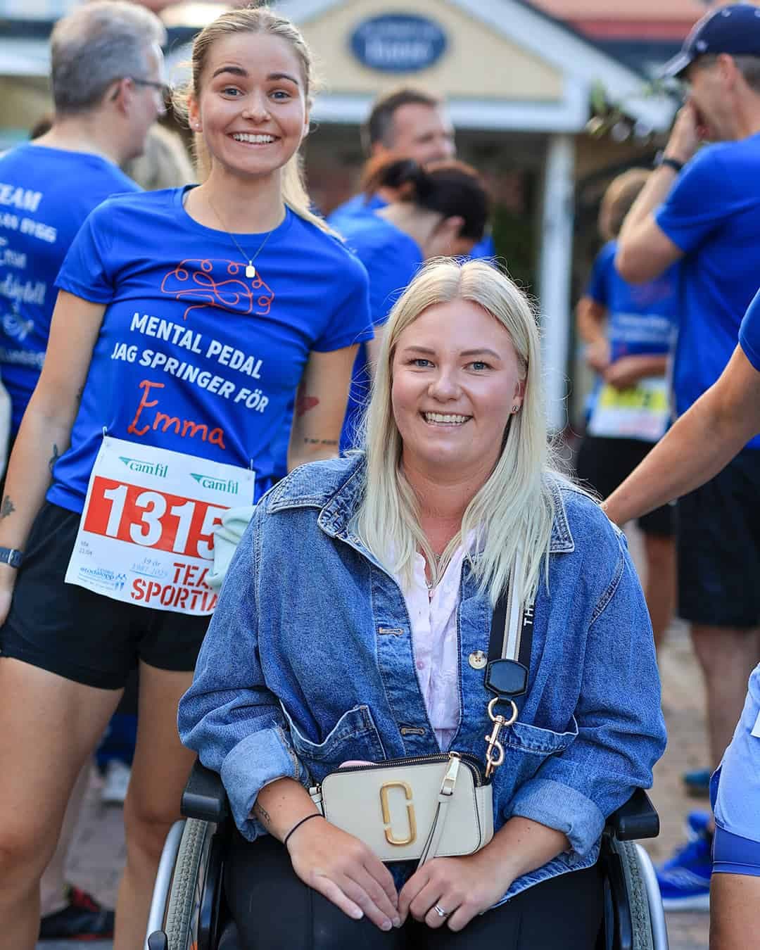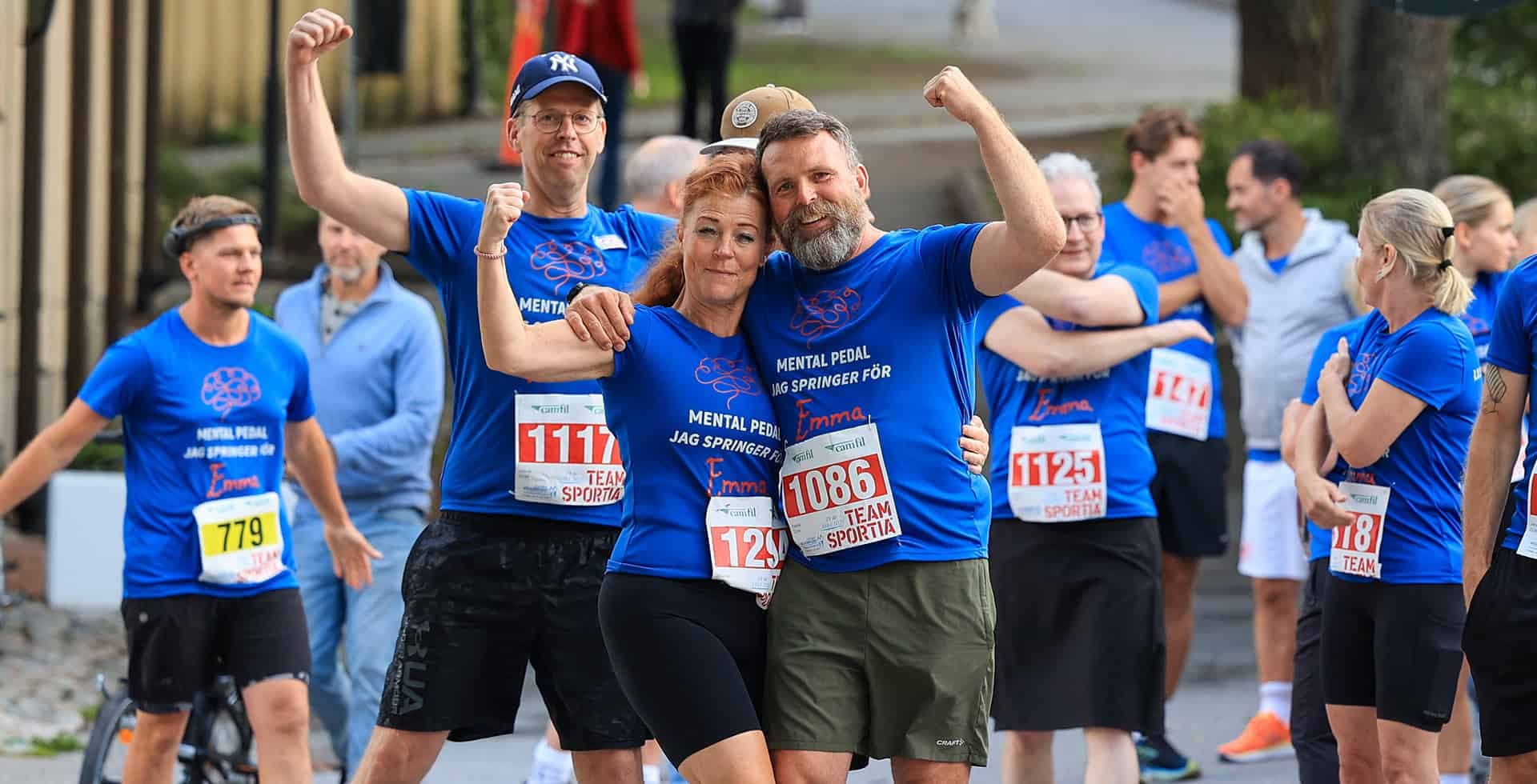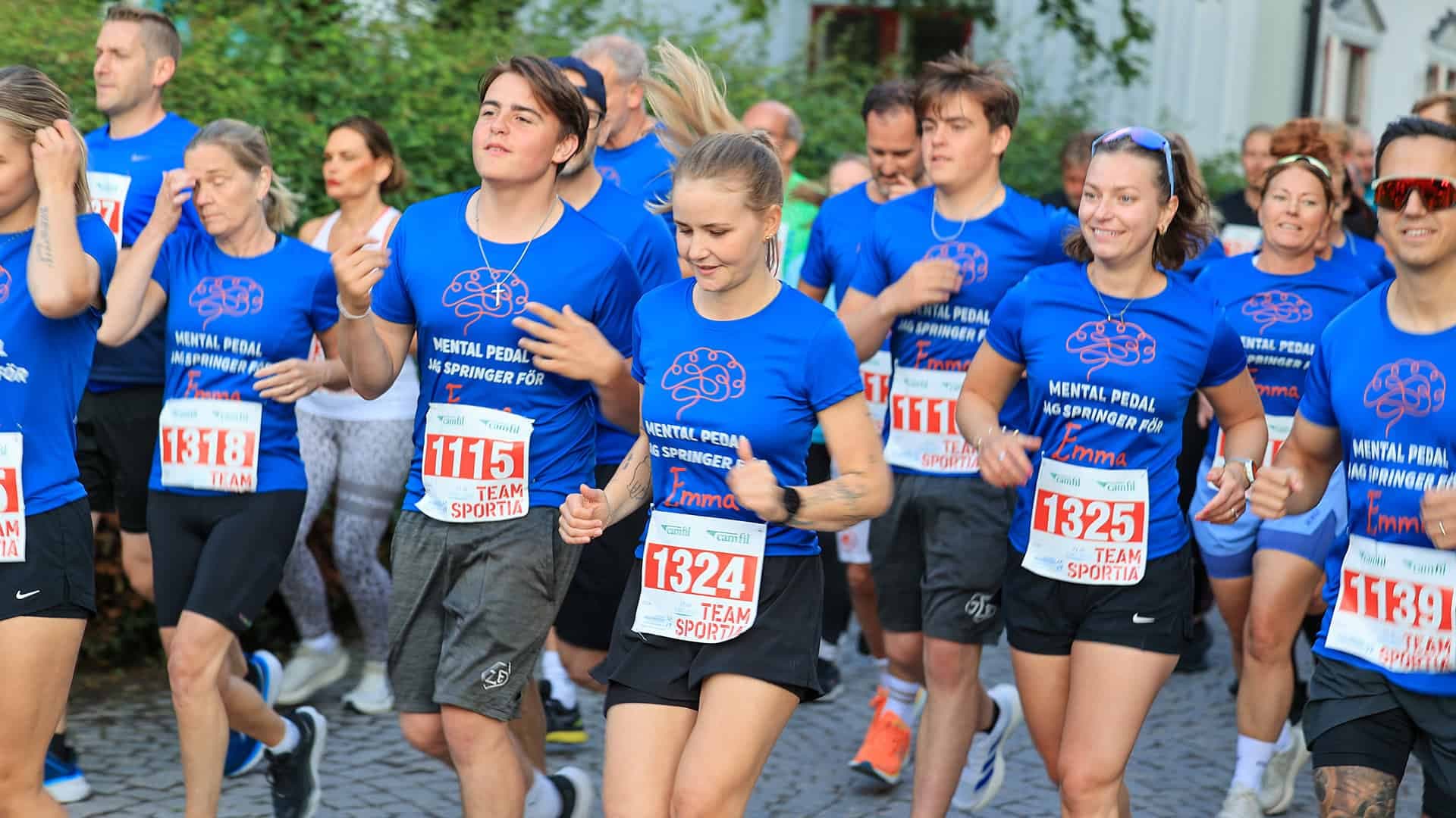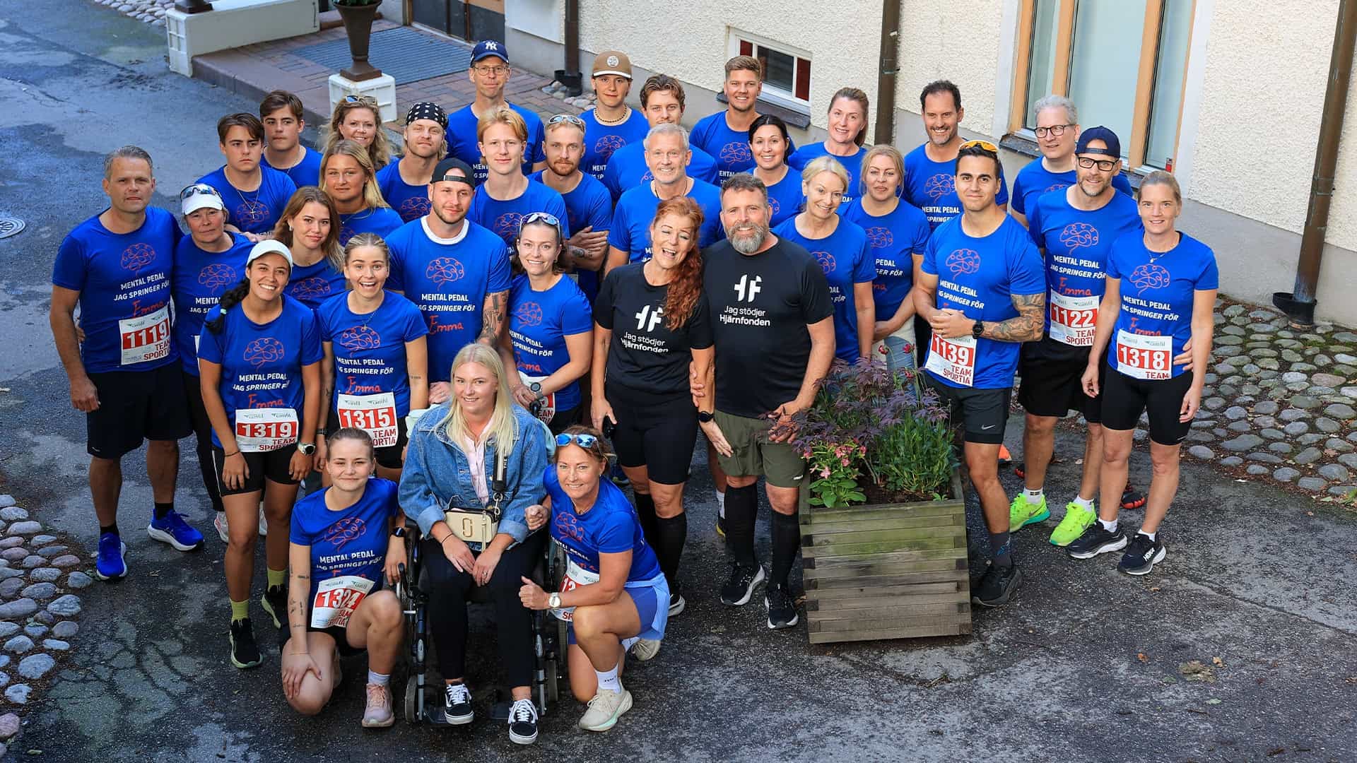 I år samlar Mental Pedal in pengar via Hjärnfonden till forskning om sällsynta hälsotillstånd och övriga av hjärnans sjukdomar och diagnoser. Och det gör de inte ensamma. Vid Trosa Stadslopp i juni sprang 28 personer i matchande tröjor med Emmas namnteckning – och lika många stod och hejade i likadana tröjor.